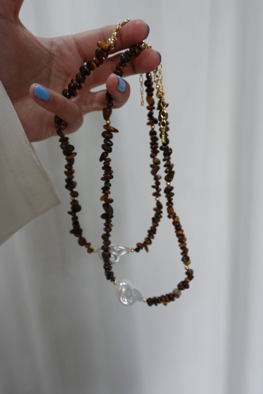 タイガーアイ×樹脂パールネックレス