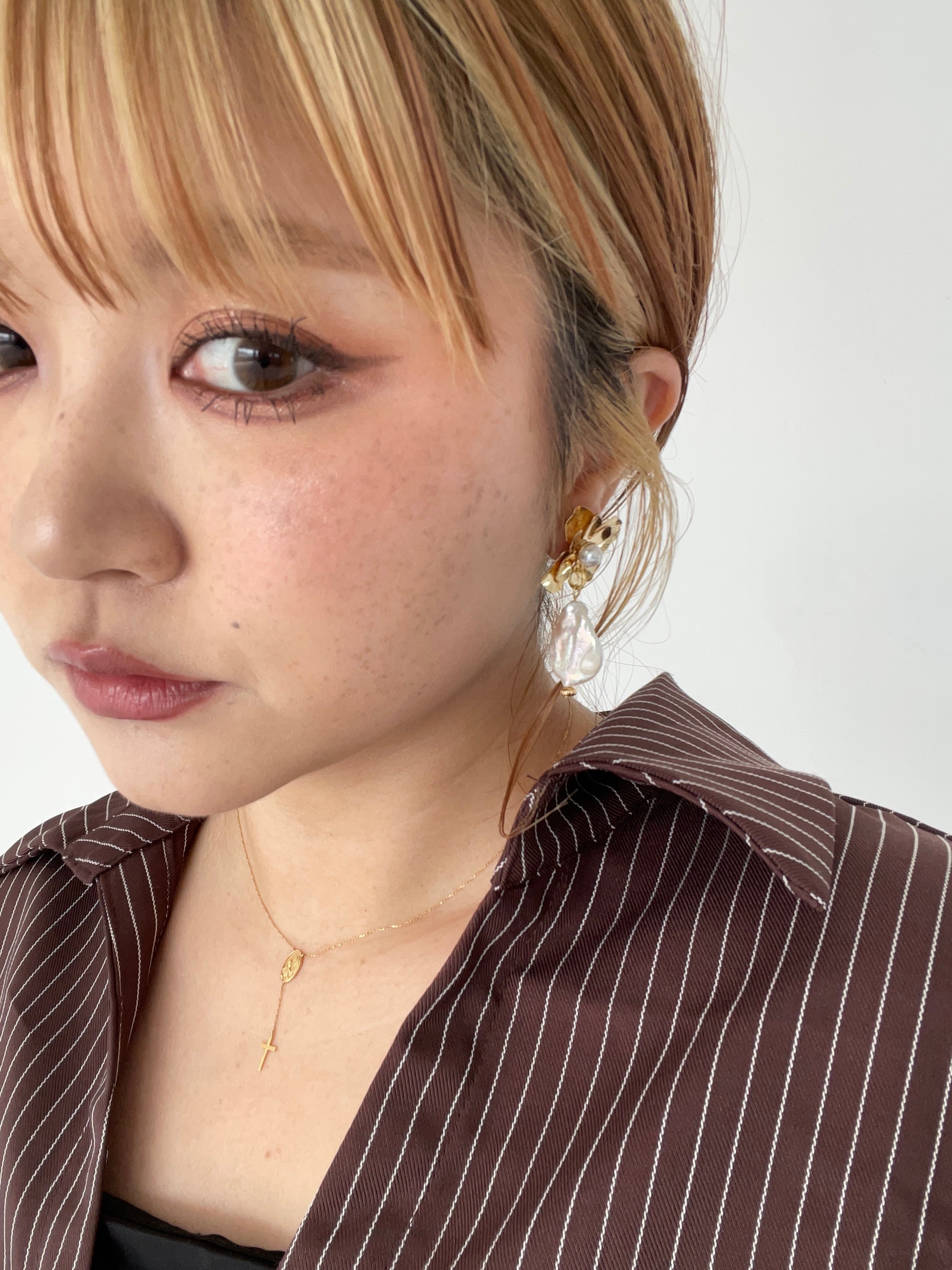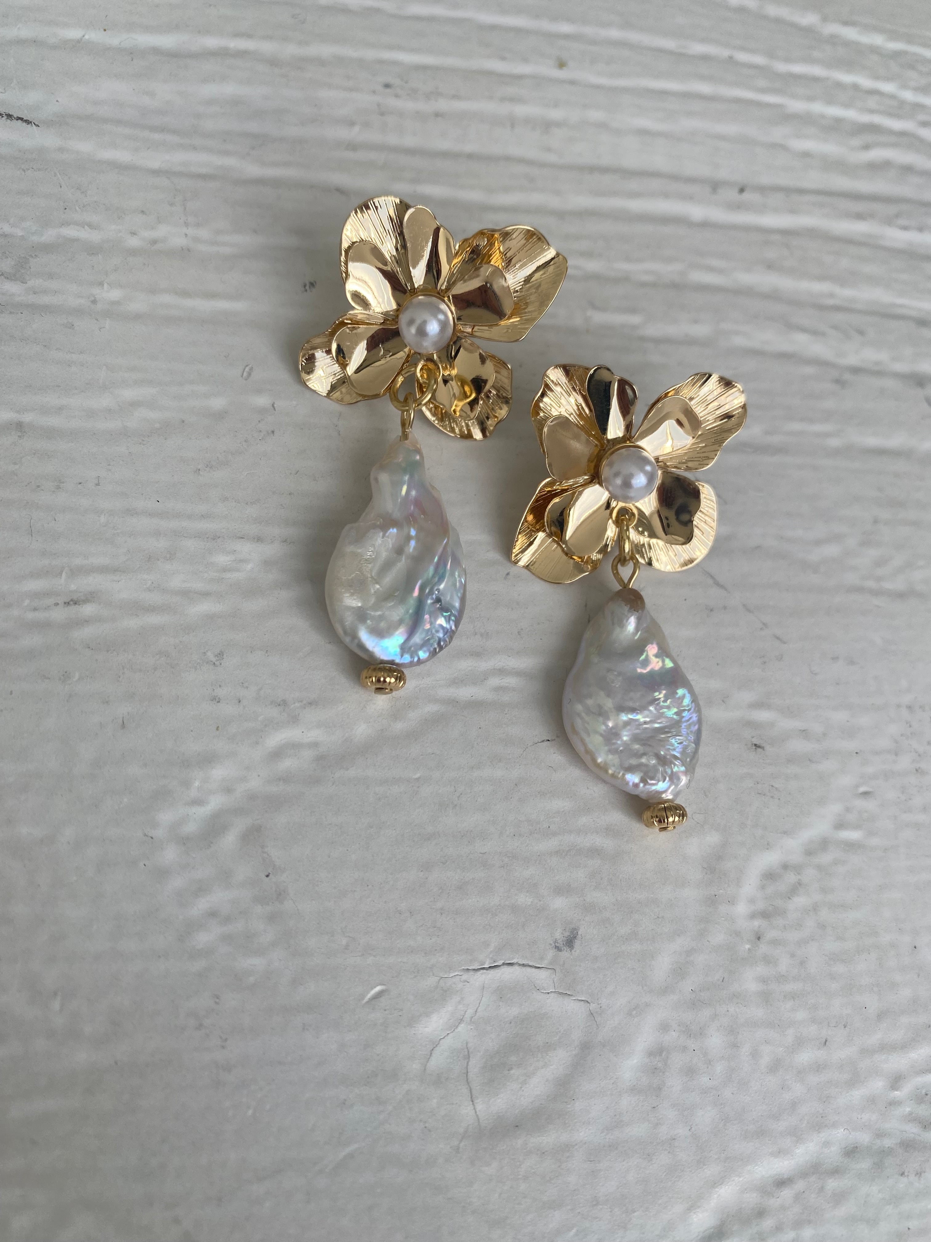 フラワー淡水パールピアス